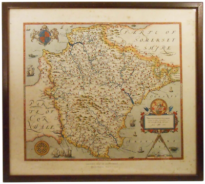 MID 20TH C 1960 VINT RESTRIKE of 1575 SAXTON’S MAP of DEVONSHIRE