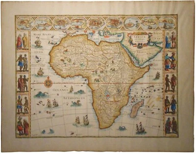 WILLEM BLAEU AFRICA NOVA DESCRIPTIO 1622 W/C HND CLRD MAP 19TH C